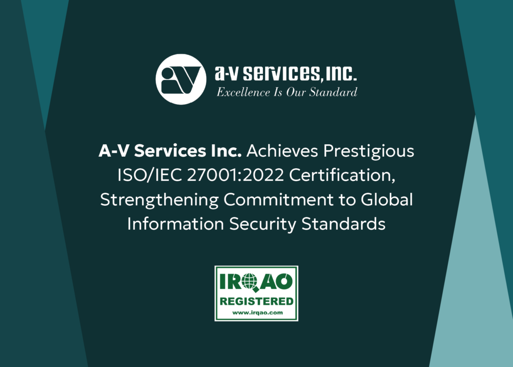 FAIRFIELD, N.J. – March 31, 2026 – A-V Services Inc., a trusted leader in workplace technology solutions with over 65 years of industry experience, today announced it has achieved ISO/IEC 27001:2022 certification, the internationally recognized gold standard for Information Security Management Systems (ISMS). The certification was issued by Quay Audit UK Limited on March 16, 2026, and is accredited by the Accreditation Service for Certifying Bodies (ASCB).
