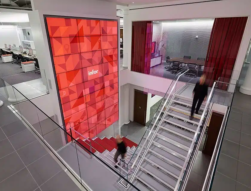 The success of this project was a testament to the collaborative efforts among Infor, A-V Services, JRM Construction, and Planar (a Leyard Company). Together, we tackled the logistical challenges of the tight installation space, ensuring that the new video wall not only met technical specifications but also aligned aesthetically with Infor’s vision.