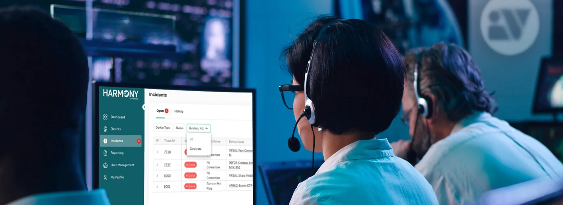 Harmony ensures reliable performance across all your systems, from huddle rooms to large conference centers. Connect with an A-V Services specialist to discover how Harmony can optimize systems, prevent disruptions and reduce technology downtime.