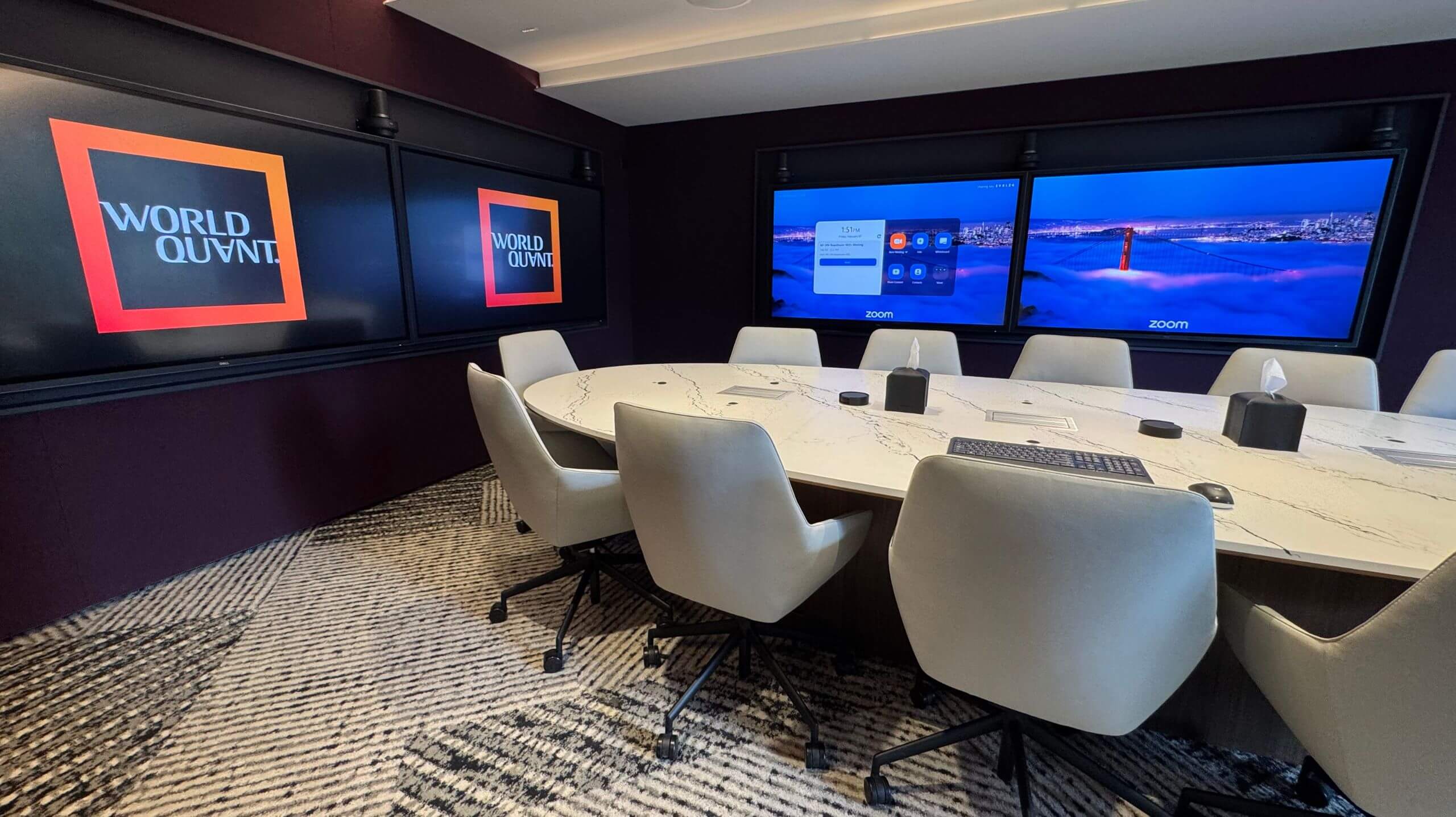 But our work didn’t stop there. Each corner of the WorldQuant office is integrated with cutting-edge audiovisual technology. From small, focused huddle rooms to fully equipped boardrooms, every space was designed with both functionality and innovation in mind.